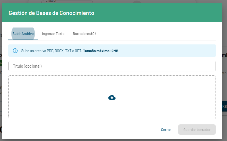Esta sección te permite subir contenido para que la IA aprenda y responda con información real y verificable.