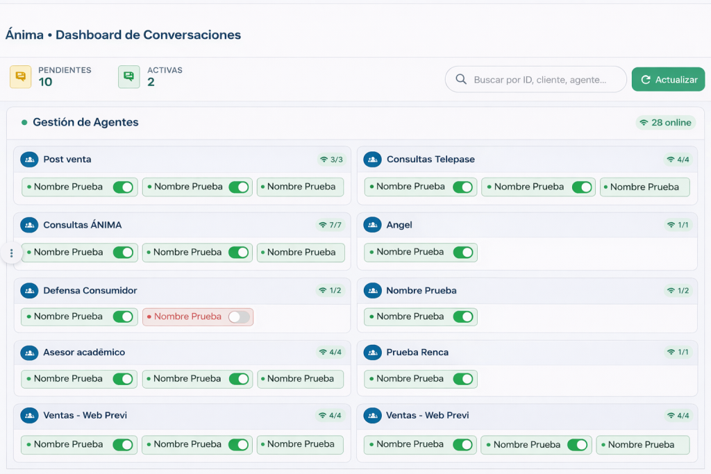 🧑‍💼 Cómo asignar agentes y gestionar colas de atención en Ánima Bot