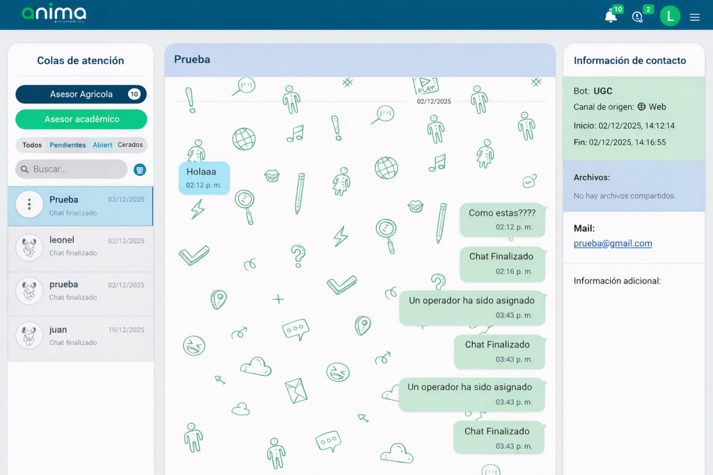 Los agentes en Ánima son usuarios de la plataforma con permisos de atención.