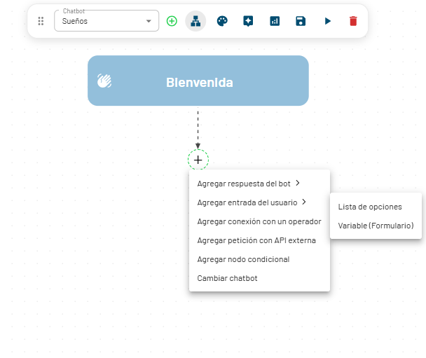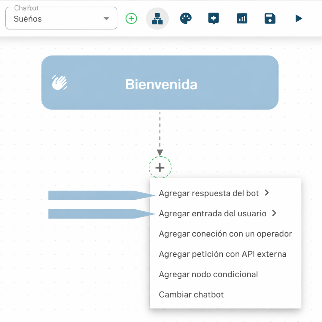 • Conectar el flujo del bot con otras plataformas o sistemas.