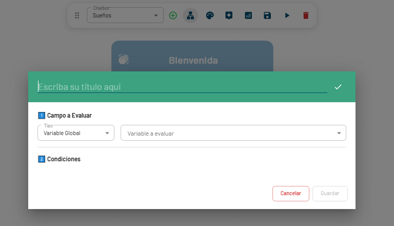 El Nodo Condicional no muestra contenido al usuario y puede conectarse con cualquier otro tipo de nodo, permitiendo construir flujos más flexibles, dinámicos y adaptados al contexto de cada conversación.
